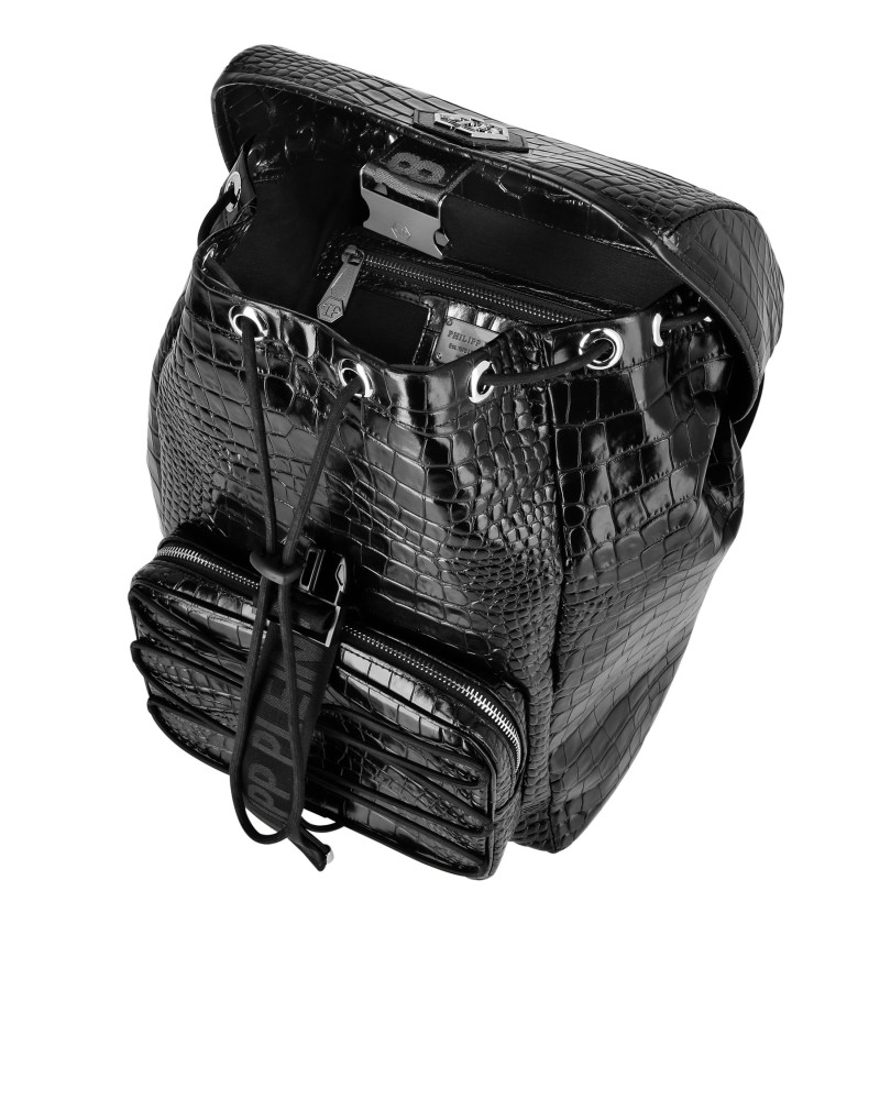 Придайте своему образу индивидуальность благодаря практичности этого кожаного рюкзака с культовым готическим брендом Plein.