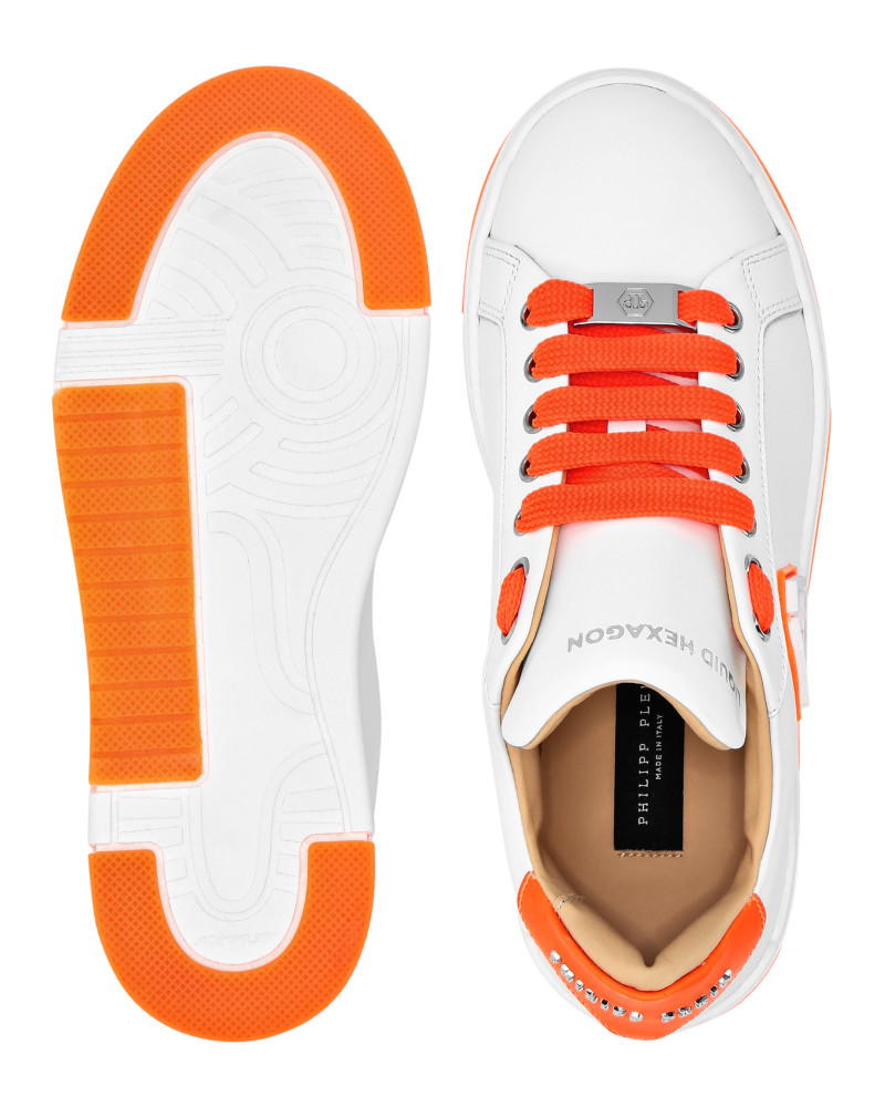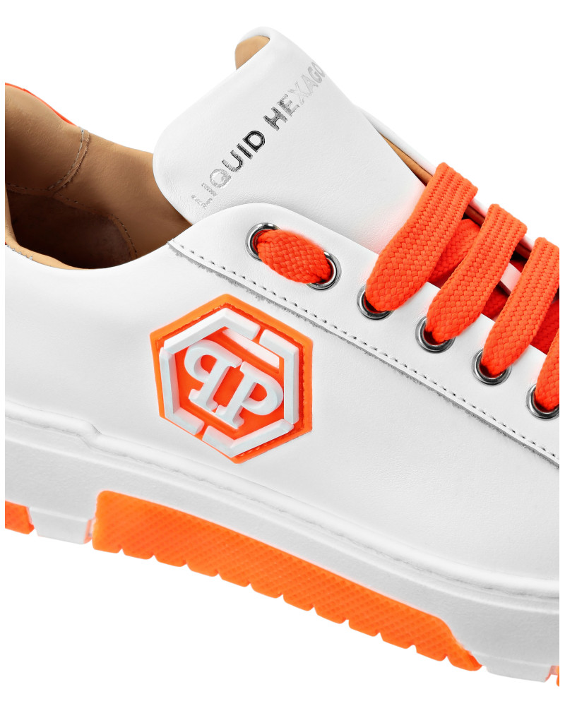 Elegant uniqueness for your free time with these leather Hexagon lo-top sneakers. Look at the details. ● Nappa upper ● Color details ● Matching colored laces ● Nickel plated logo on the outer quarter ● Rubberized midsole ● Grooved outsole for maximum grip ● Inner lining and removable insole
